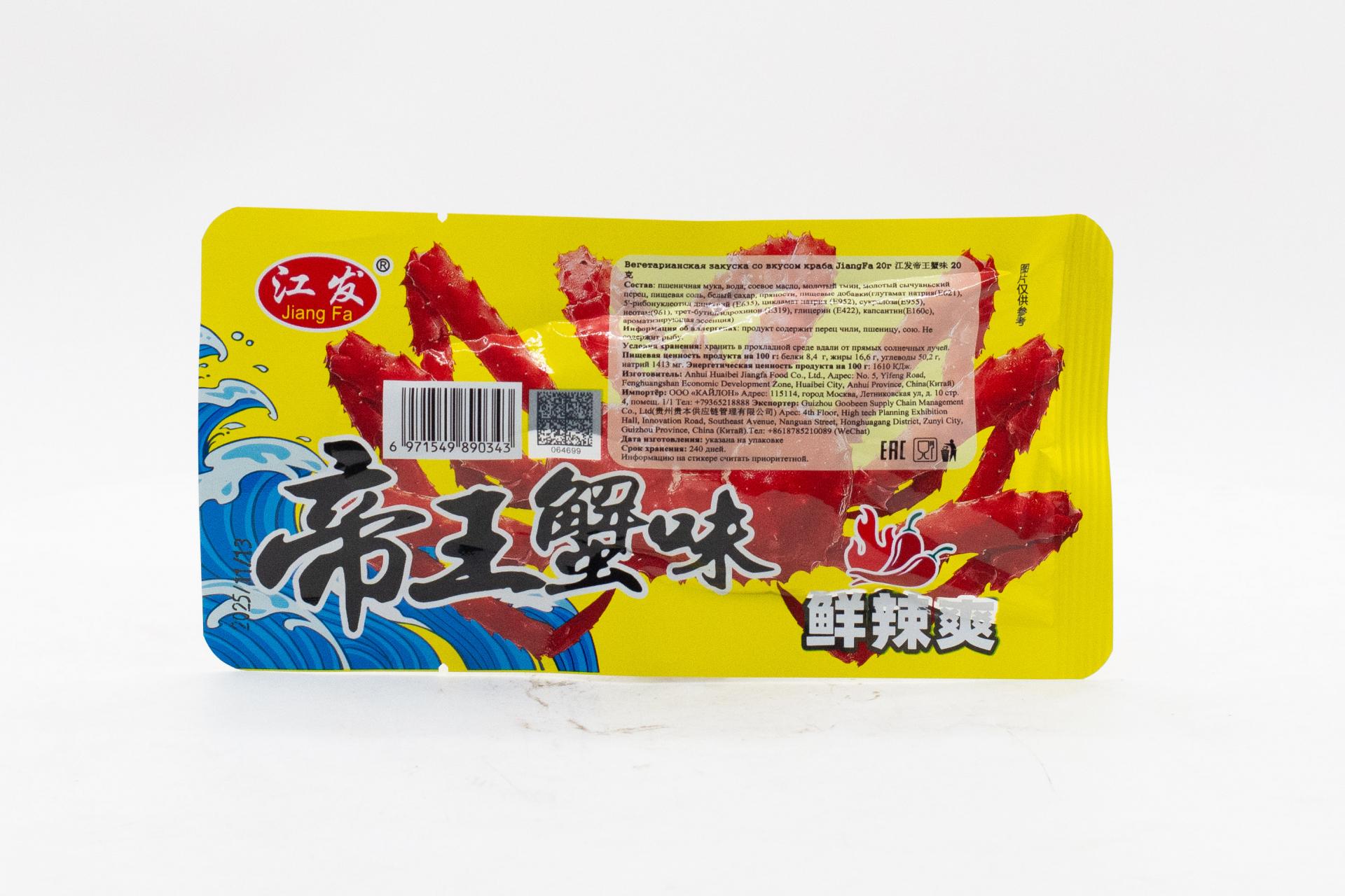 Вегетарианская закуска JiangFa со вкусом краба (Китай) 20г18,77 руб. за штуку (в упак. 30 шт.) |